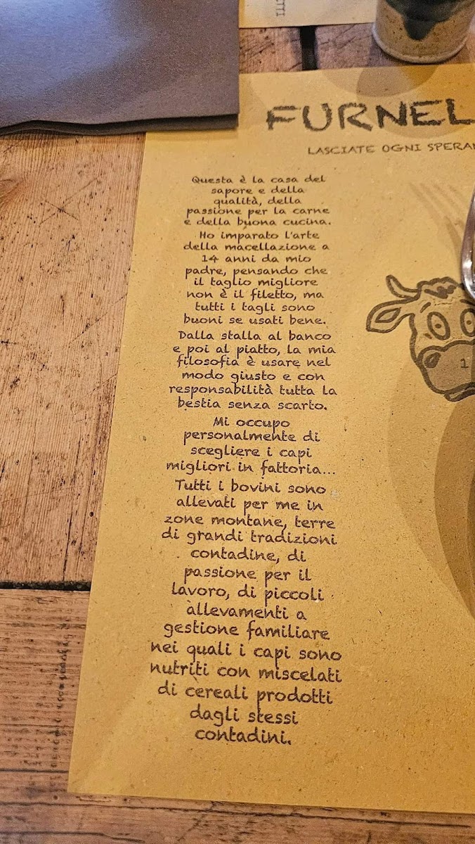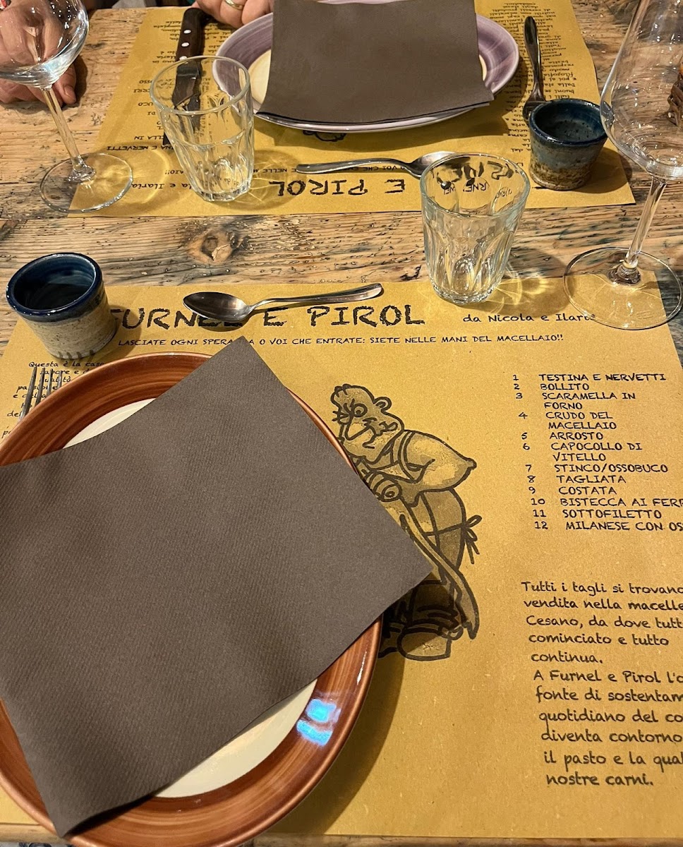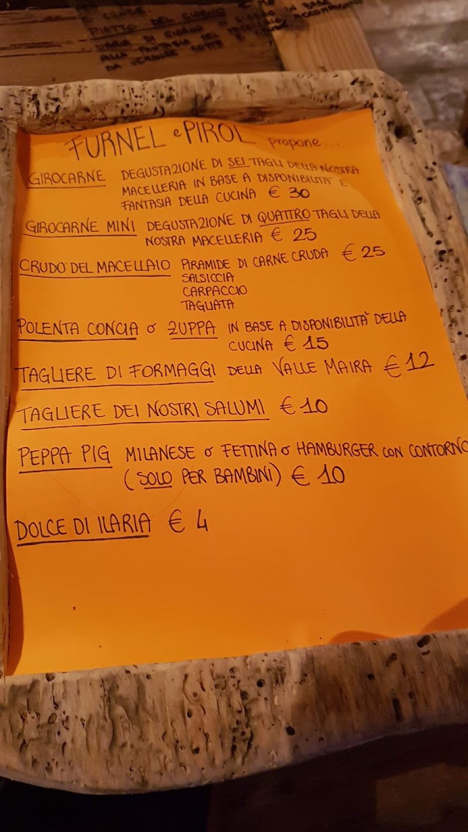 The menu at Furnel E Pirol offers a delightful selection of traditional Italian dishes, each prepared with care and quality ingredients. Among the standout options, the Pinzimonio offers a refreshing start with fresh, crisp vegetables served alongside a delicious dipping sauce. For those craving hearty, savory flavors, the Tagliata provides a perfect balance of tenderness and flavor, featuring a beautifully cooked steak sliced thin and drizzled with balsamic. Another favorite is the Cotoletta Con L'osso Panata, a mouth-watering breaded and fried veal cutlet served on the bone, delivering a satisfying crunch with every bite. The restaurant’s offerings reflect a focus on classic Italian comfort food, with every dish being both flavorful and satisfying, making it a great place to experience authentic regional cuisine.